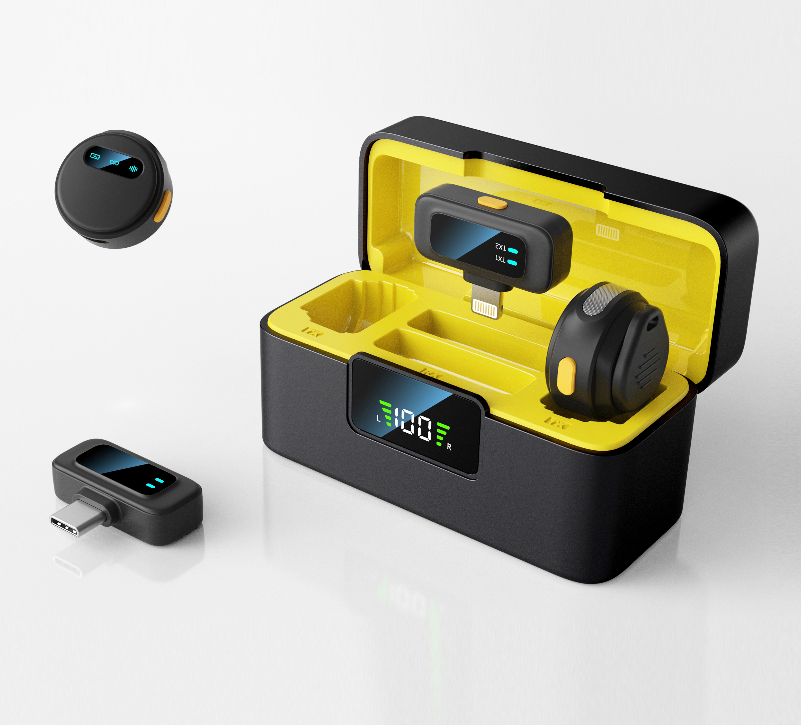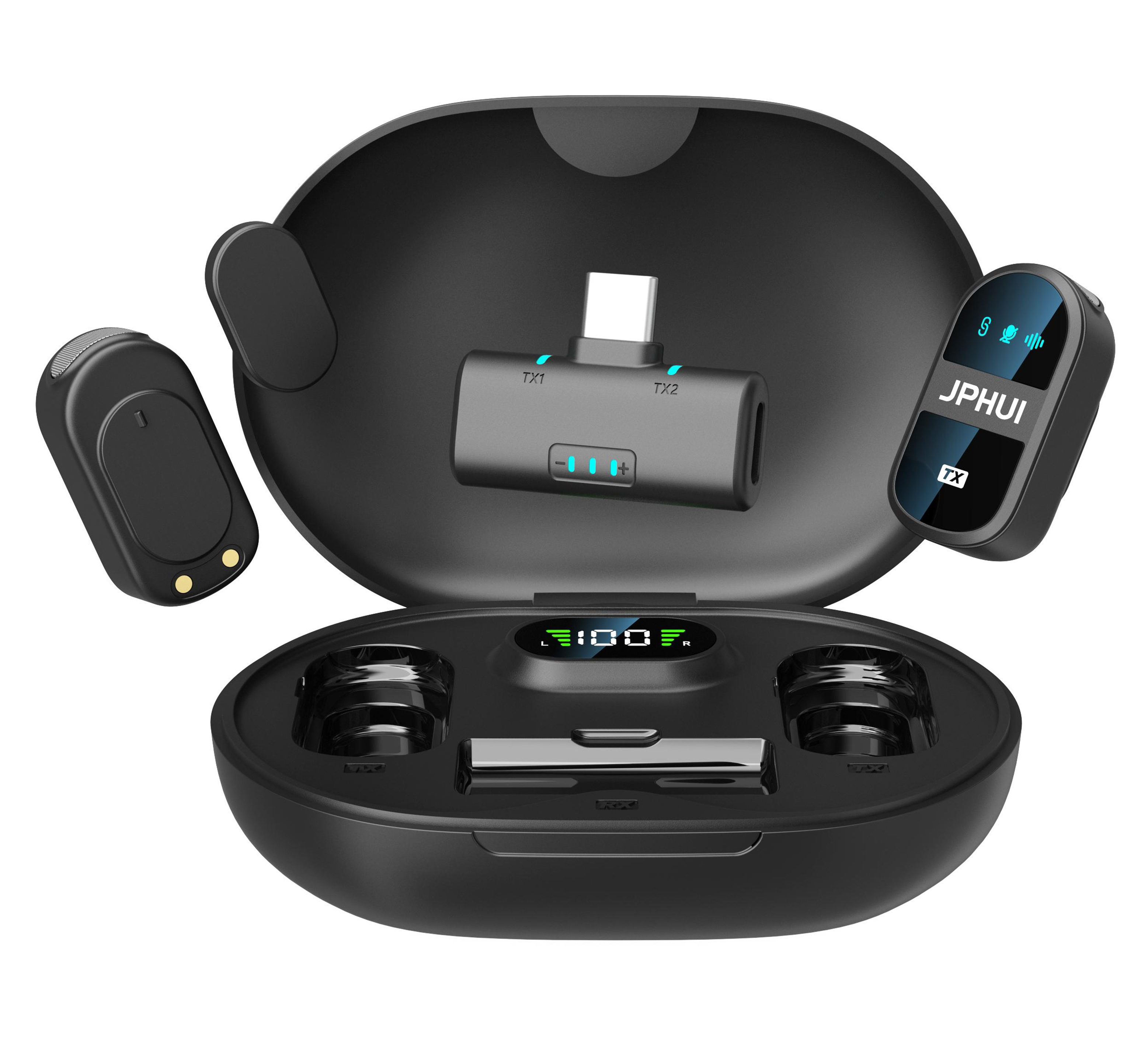 无线领夹麦克风,隐藏款式,造型独特,外观简洁大气,全功能版本,适配所有设备,可多台设备同时共用1个发射器